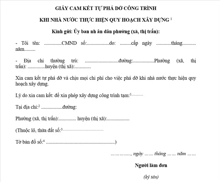 Ngoài ra, trong một số trường hợp, địa phương còn yêu cầu cam kết đảm bảo an toàn cho nhà liền kề, biện pháp che chắn bụi và tiếng ồn, cũng như phương án vận chuyển xà bần.